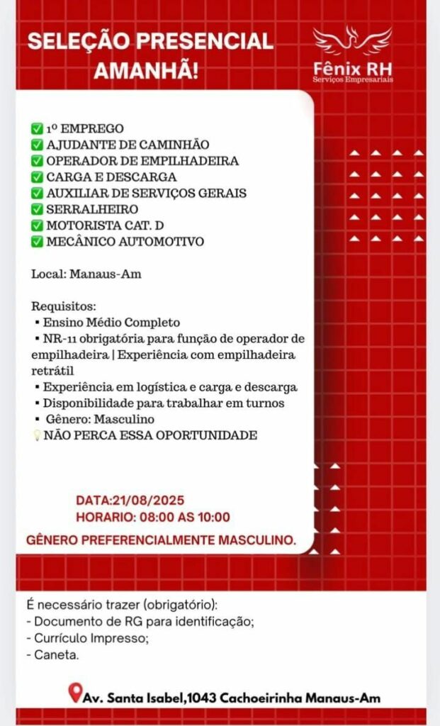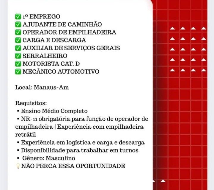 • Eletricista, Serralheiro e mais 110 vagas de emprego no Sine Amazonas