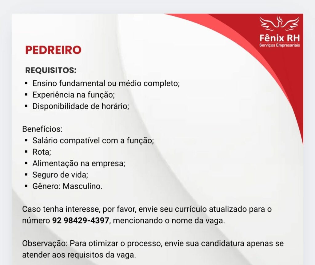 Rh está selecionando Pedreiro; Envie seu currículo!