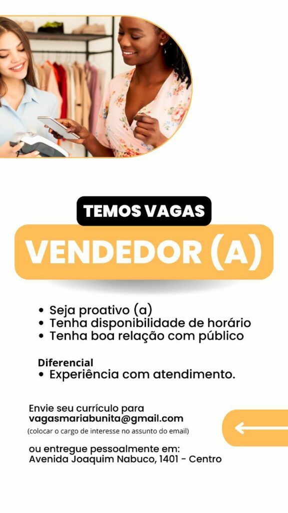 Empresa está selecionando Vendedoras; Envie seu currículo!