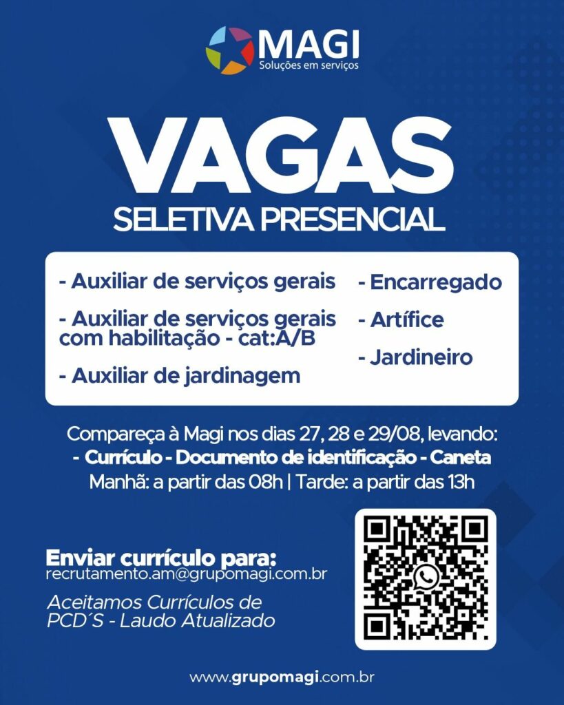 • Hospital Santa Júlia abre vaga para maqueiro em Manaus
