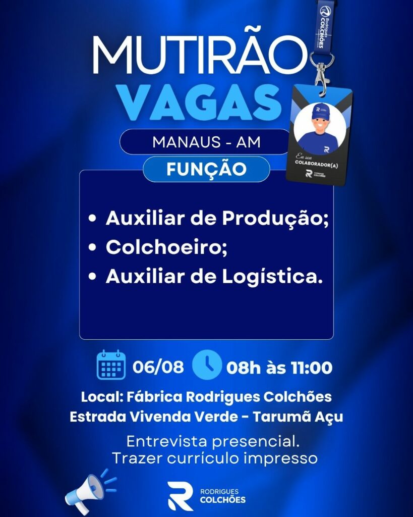 Rodrigues colchões seleciona Auxiliar de produção, Colchoeiro, Auxiliar de logística; Envie seu currículo!