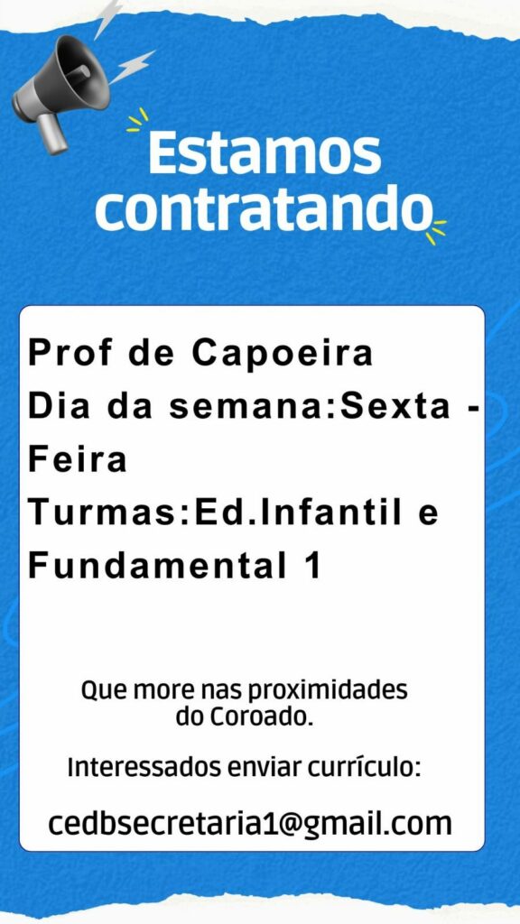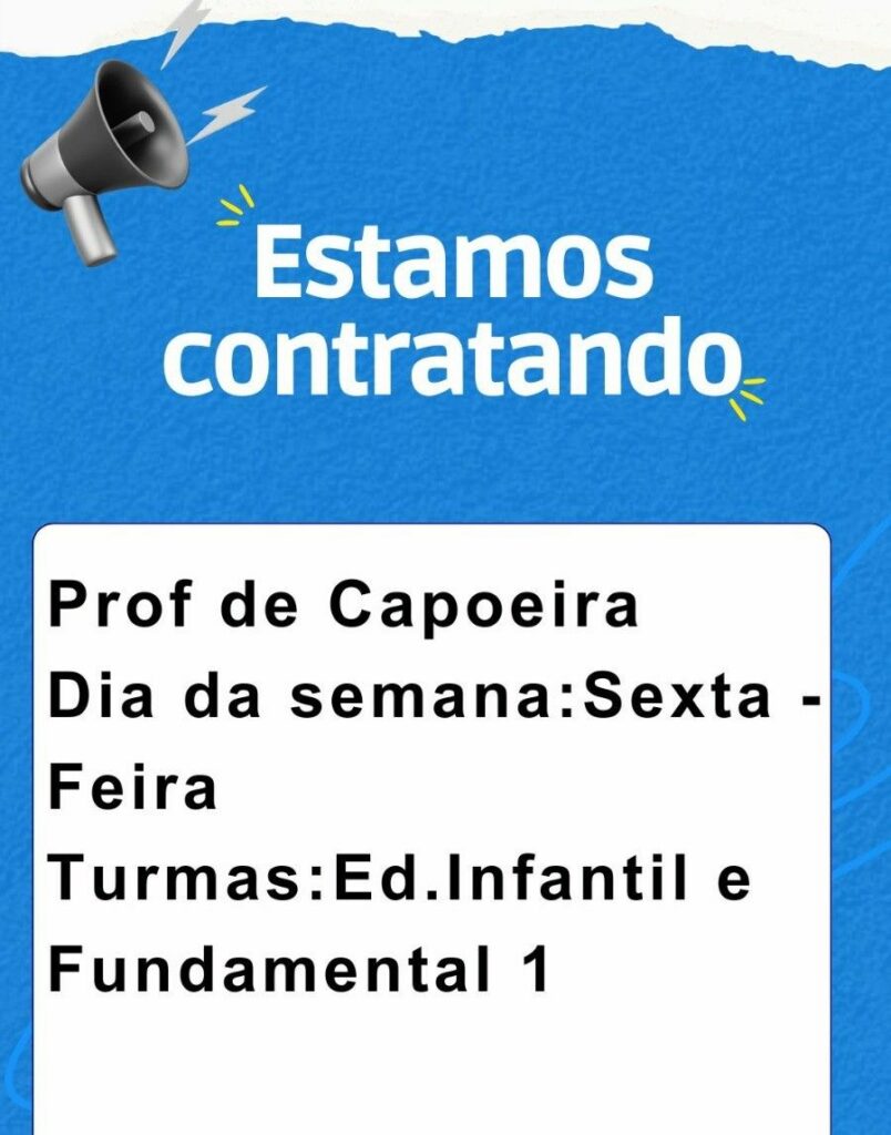 Seleção para seguinte vaga Professor de capoeira; Envie seu currículo!