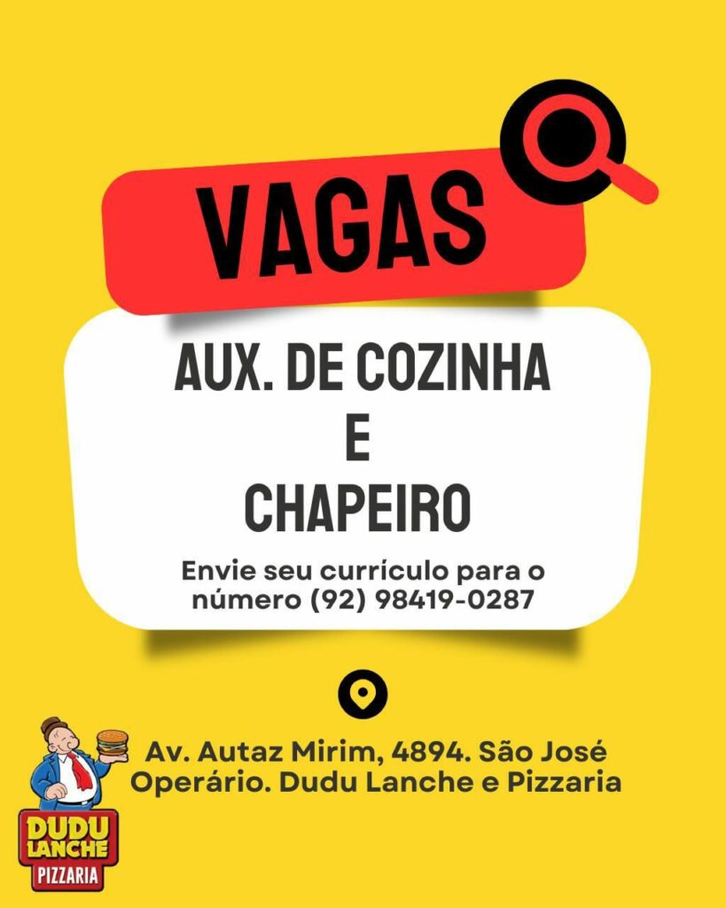 Seleção para seguintes vaga Auxiliar de cozinha e Chapeiro; Envie seu currículo!