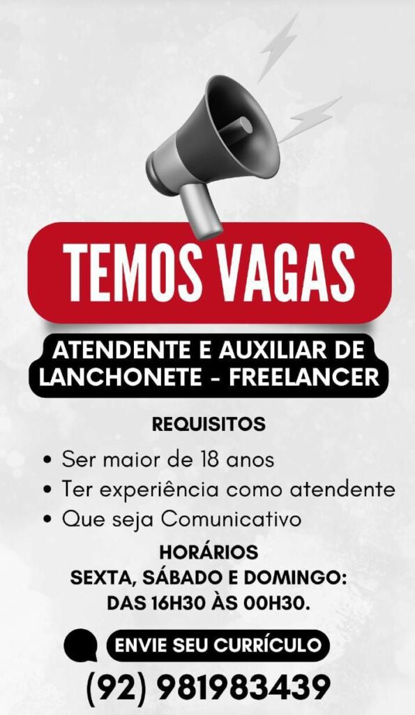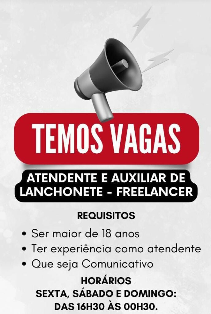 Seleção para seguintes vagas Atendente, Auxiliar de lanchonete free-lancer; Envie seu currículo!