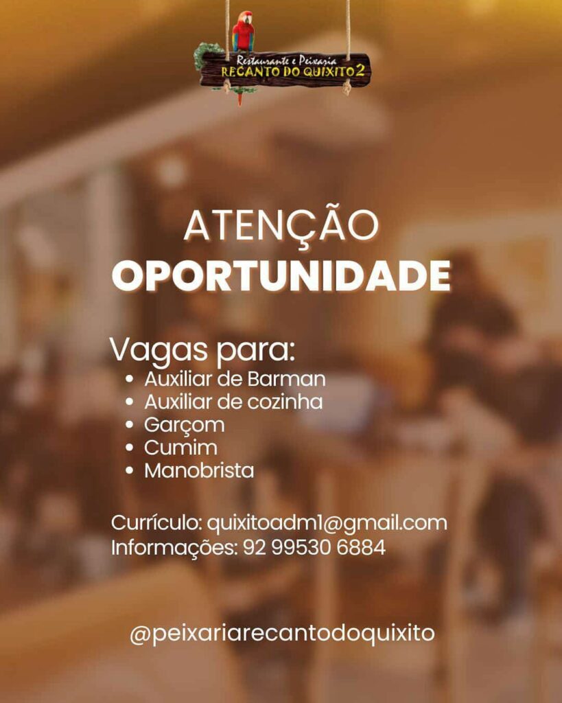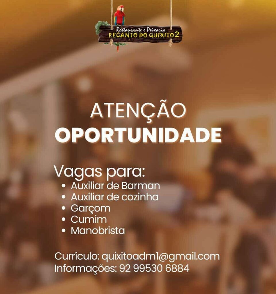 Seleção para seguintes vagas Auxiliar de Barman, Auxiliar de cozinha, Garçom, Cumim, Manobrista; Envie seu currículo!