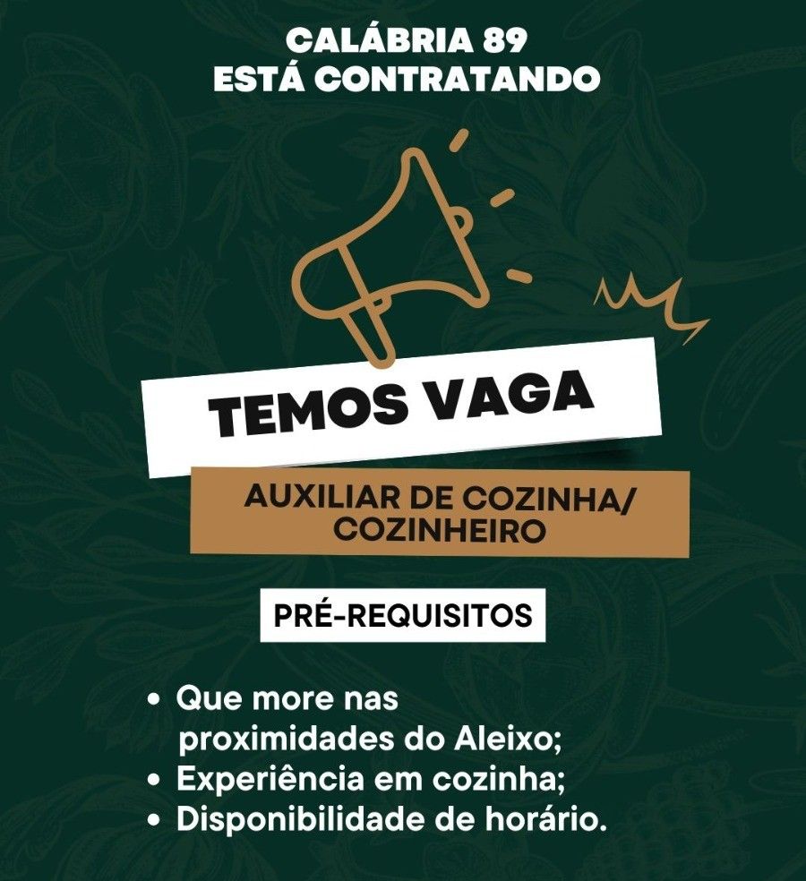 Seleção para seguintes vagas Auxiliar de cozinha, Cozinheiro; Envie seu currículo!