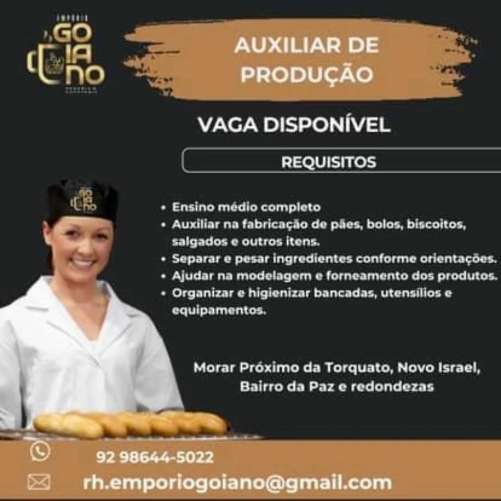 Seleção para seguintes vagas Auxiliar de produção, Auxiliar de serviços gerais, Operadora de caixa, Auxiliar de Produção, Chapeiro (a), Atendente; Envie seu currículo!
