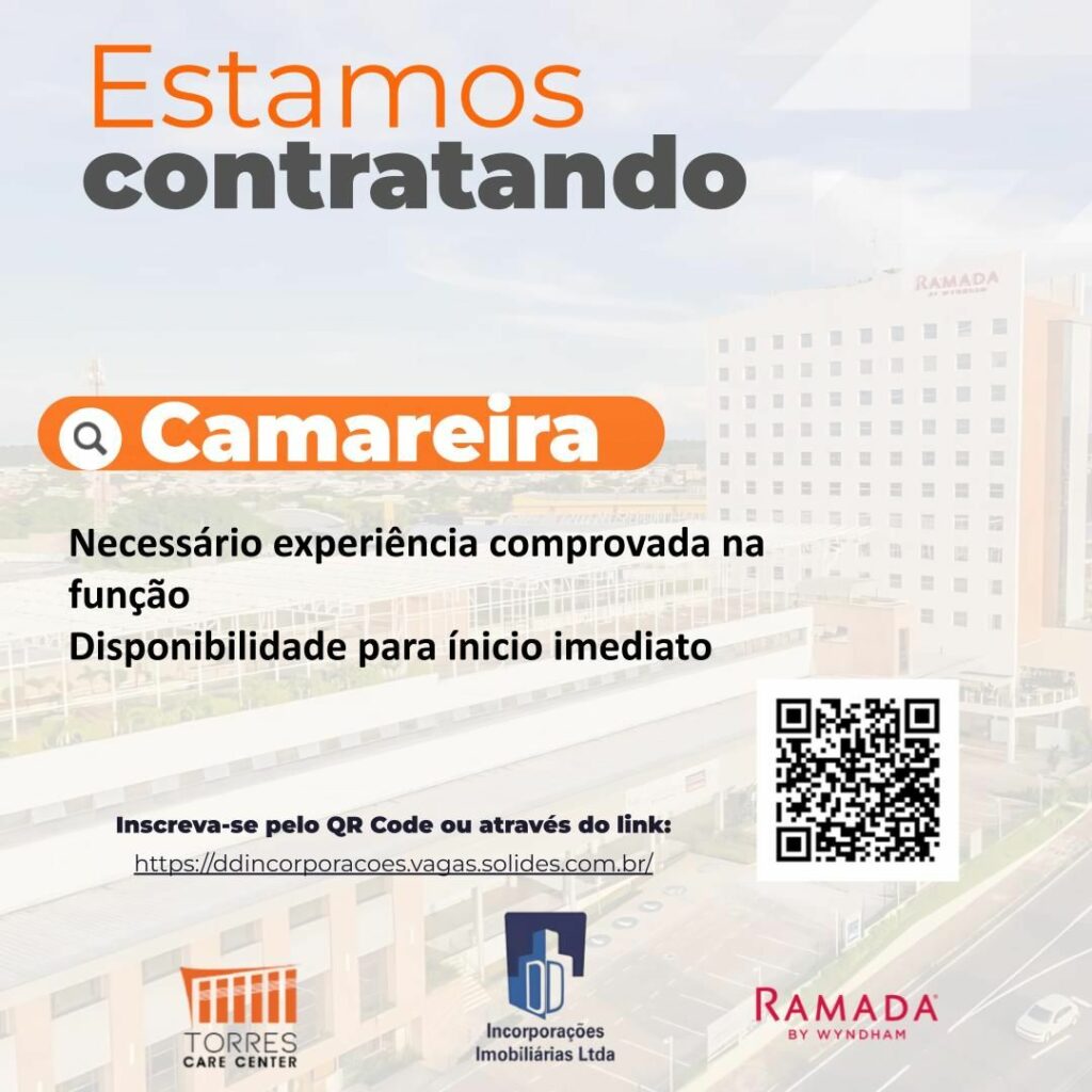 Seleção para seguintes vagas Camareira, Auxiliar de serviços gerais, Assistente de governança; Envie seu currículo!