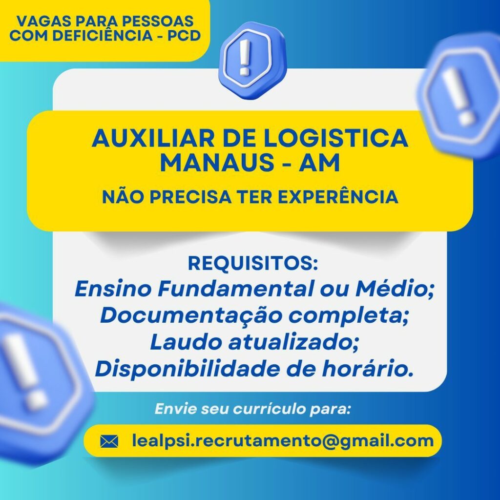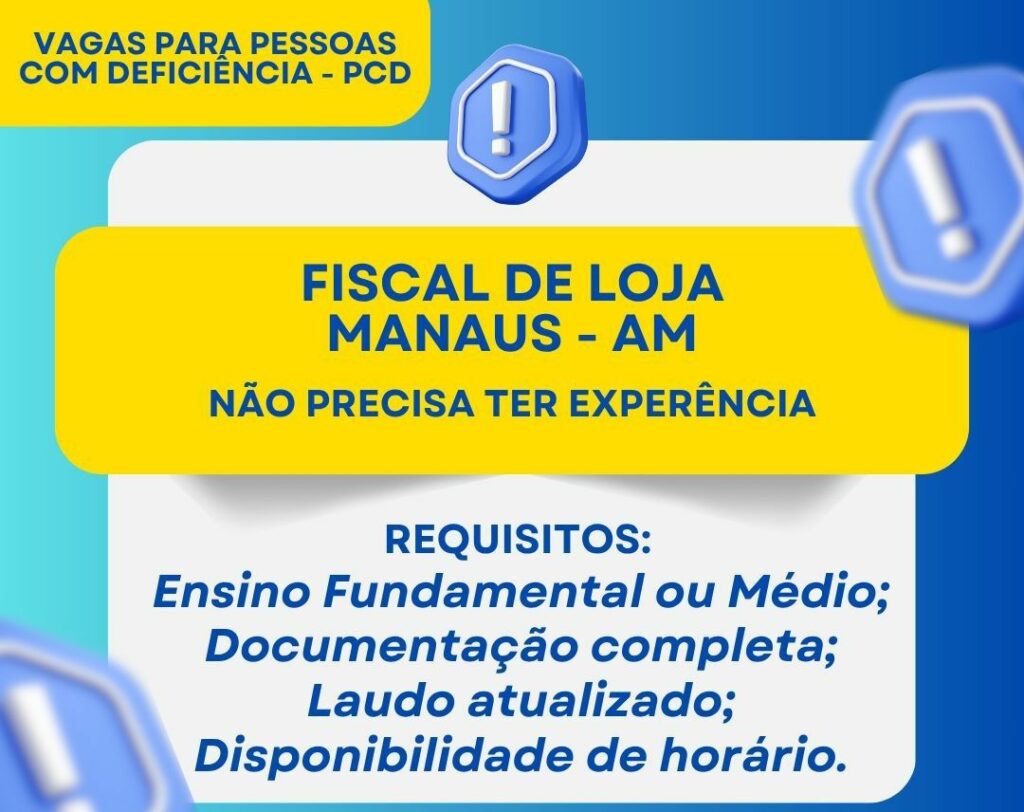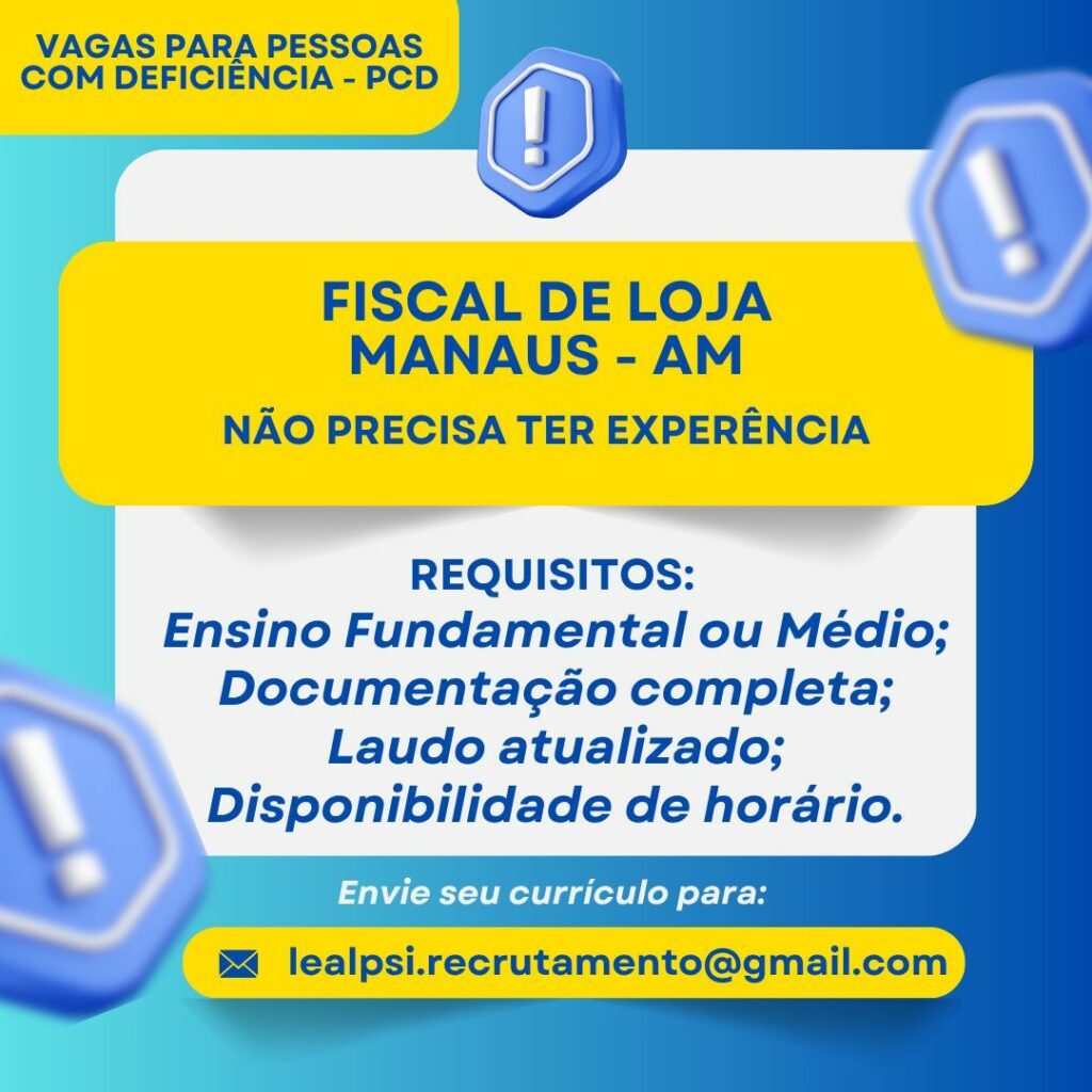 Seleção para seguintes vagas Fiscal de loja, Auxiliar de loja, Auxiliar de logística; Envie seu currículo!