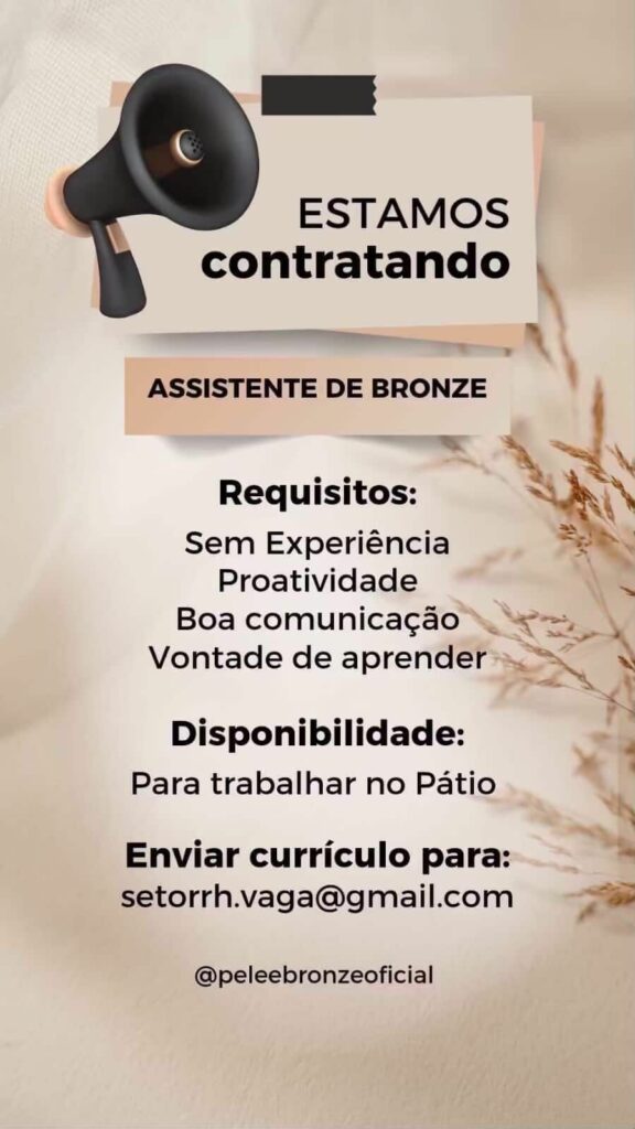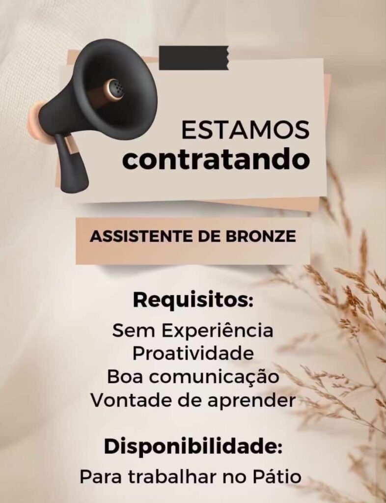 Seleção para vaga de Assistente de bronze; Envie seu currículo!