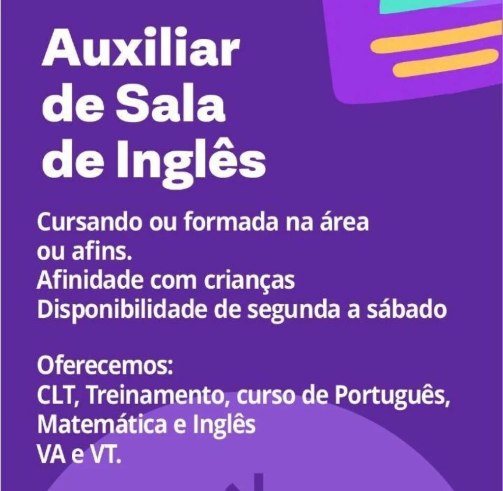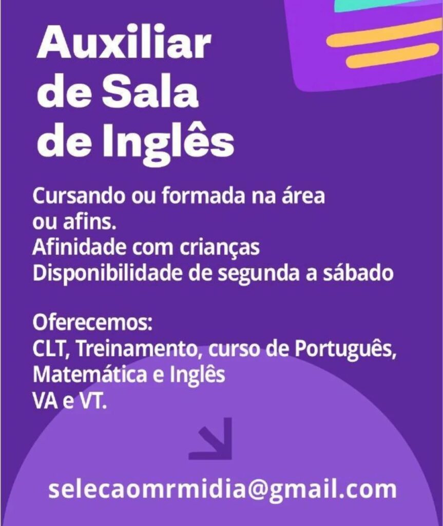 Seleção para vaga de Auxiliar de sala de inglês; Envie seu currículo!