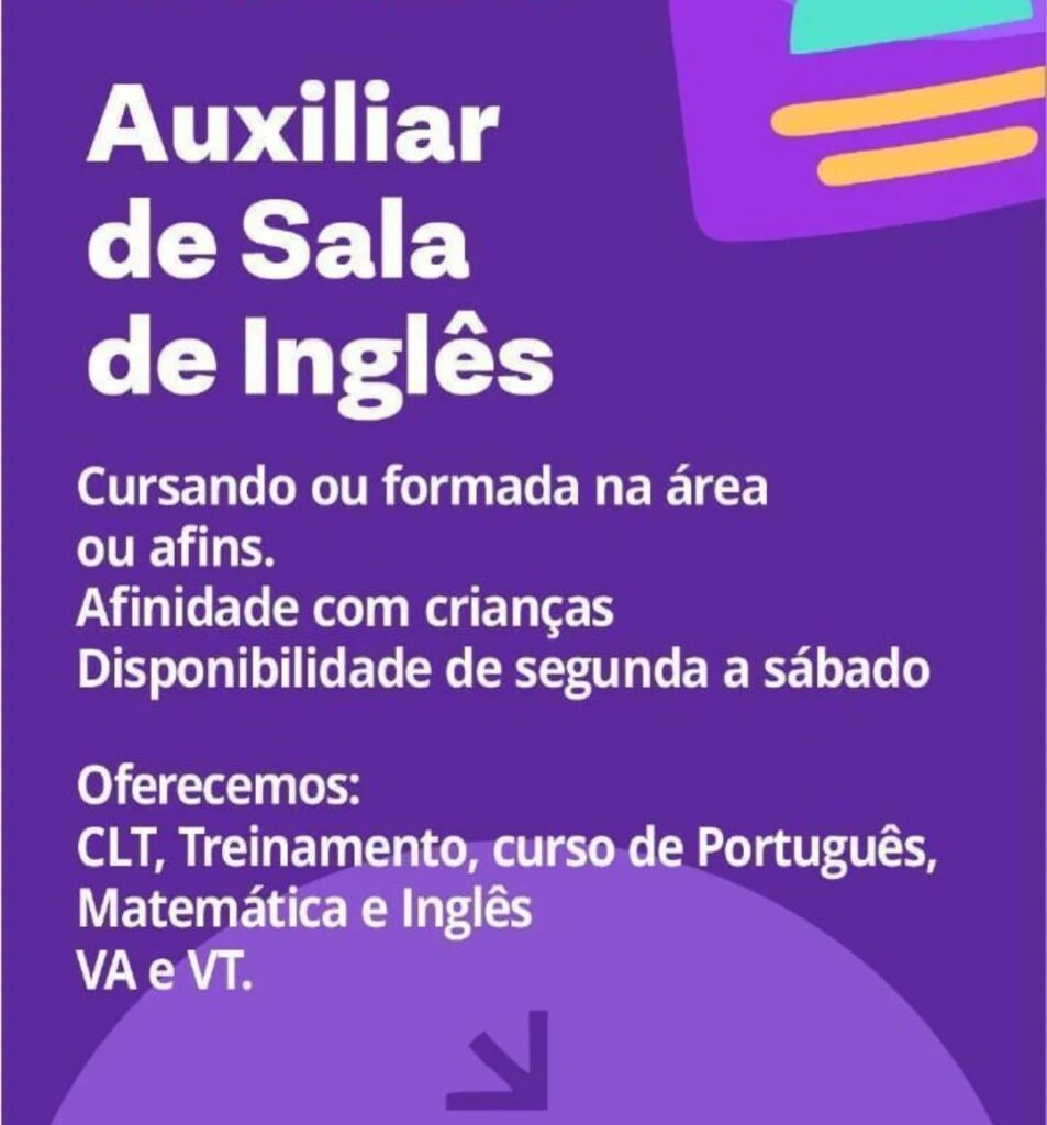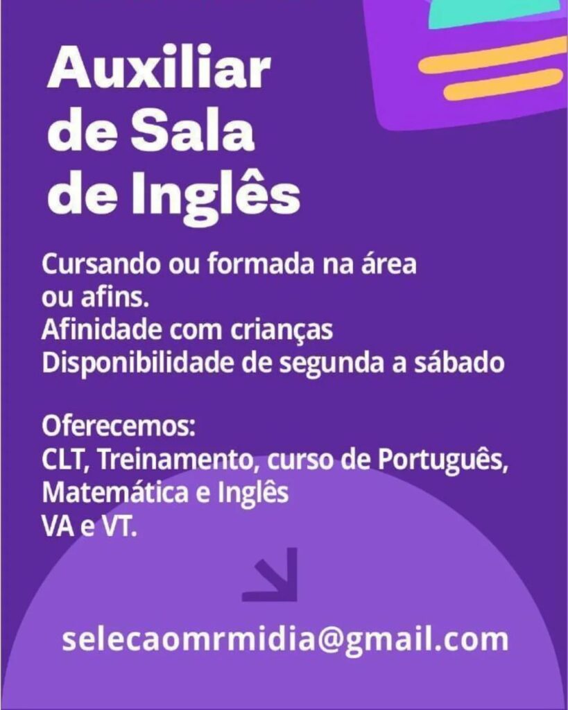 Seleção para vaga de Auxiliar de sala de inglês; Envie seu currículo!