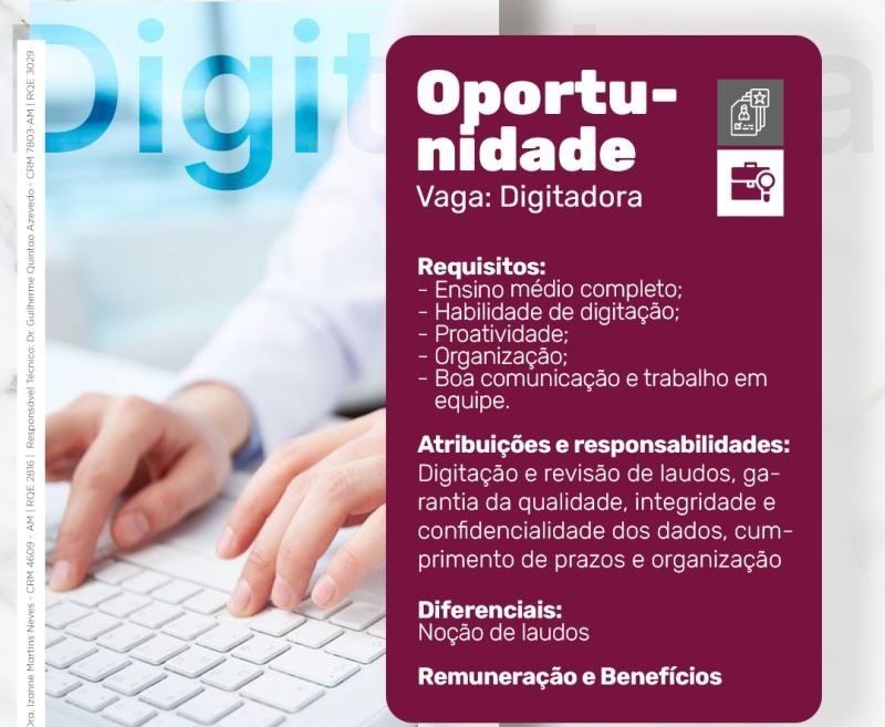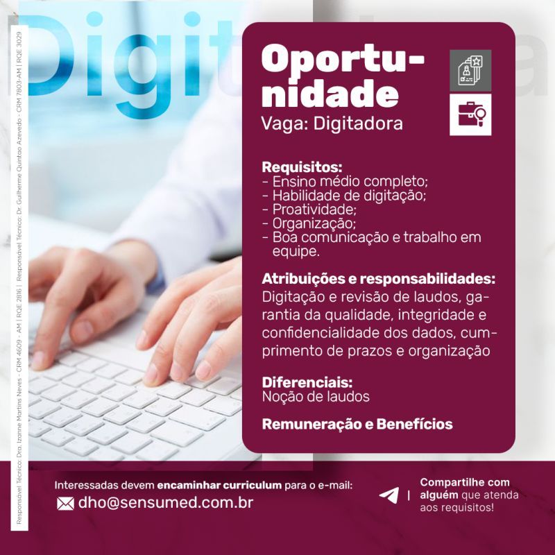 Seleção para vaga de Digitadora; Envie seu currículo!