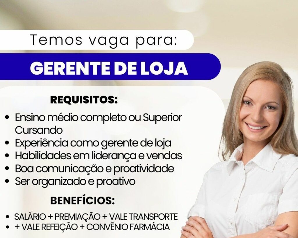 Seleção para vaga de Gerente de loja; Envie seu currículo!