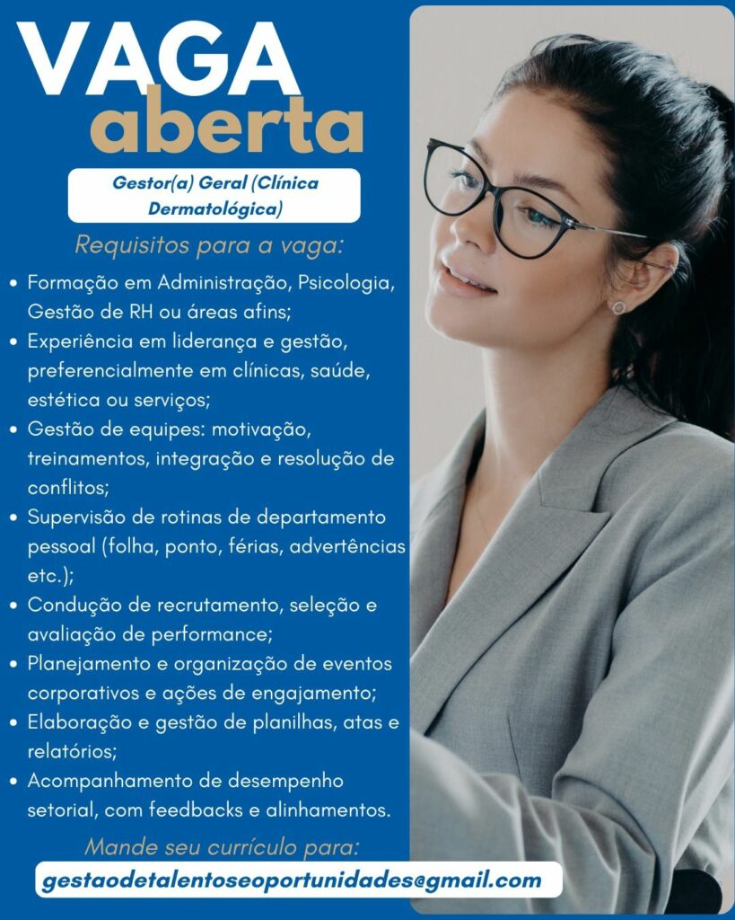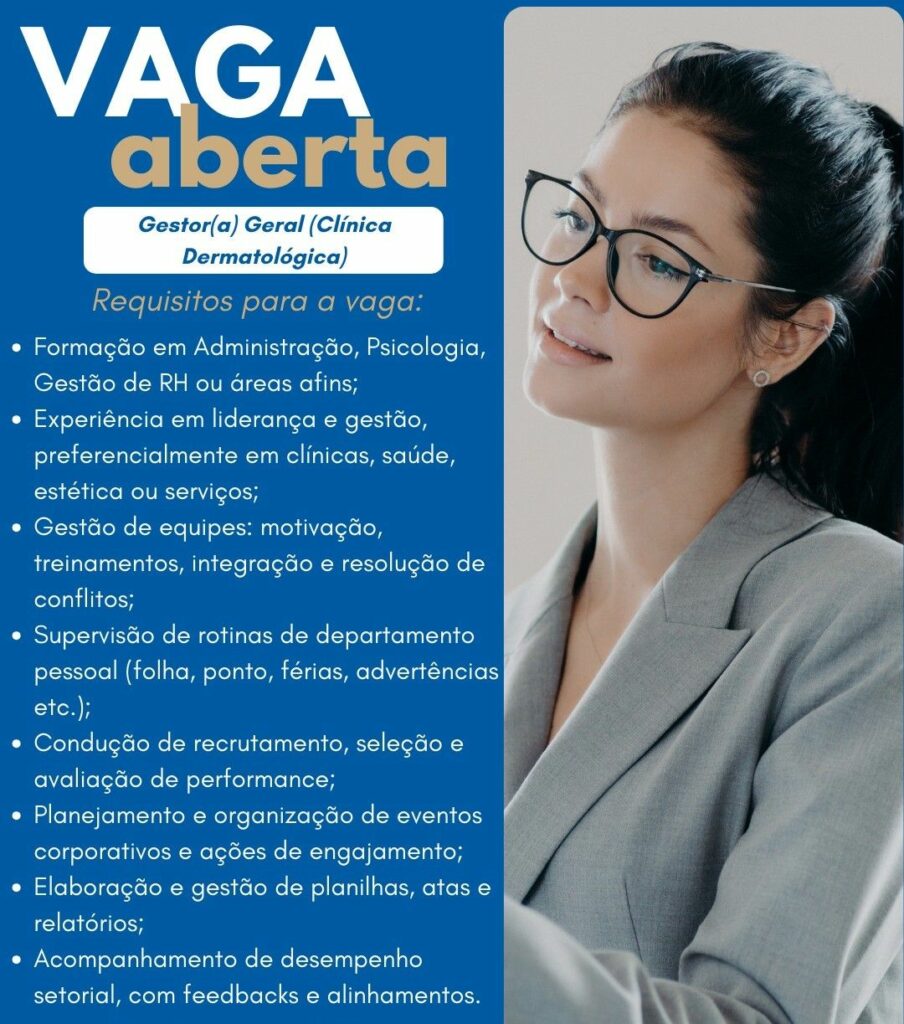 Seleção para vaga de Gestor (a) geral clínica dermatológica; Envie seu currículo!