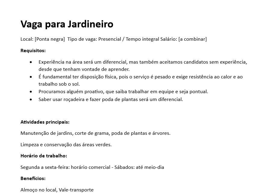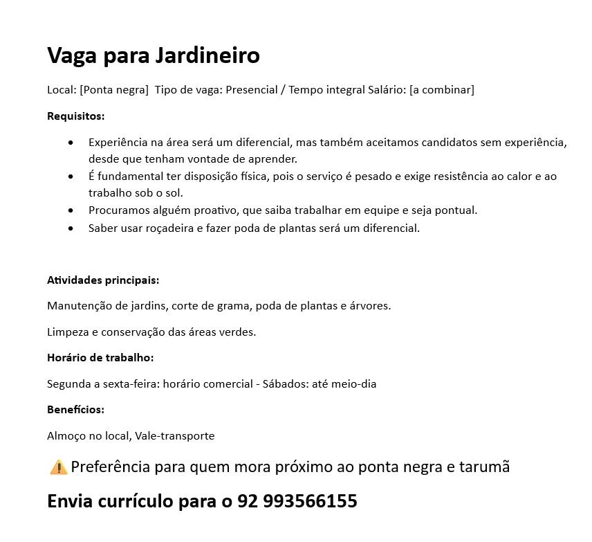 Seleção para vaga de Jardineiro; Envie seu currículo!