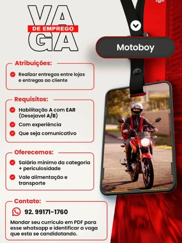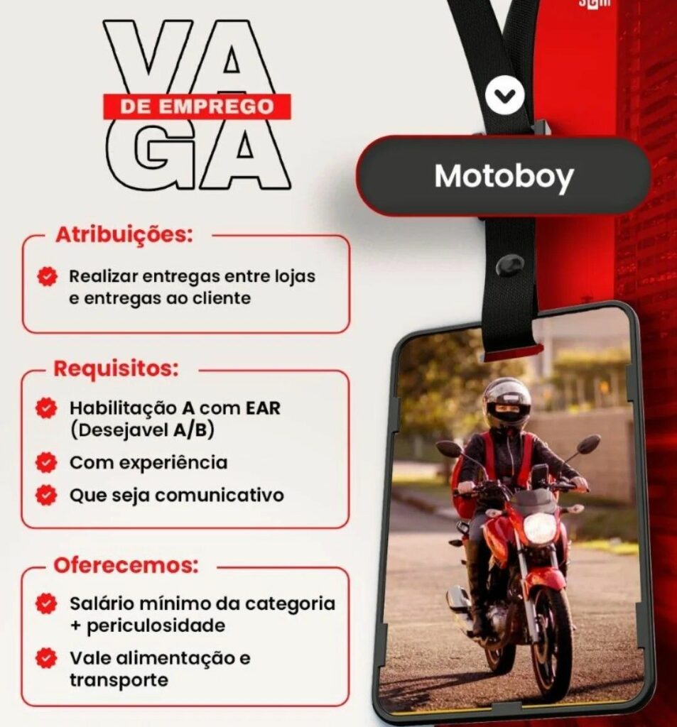 Seleção para vaga de Motoboy; Envie seu currículo!