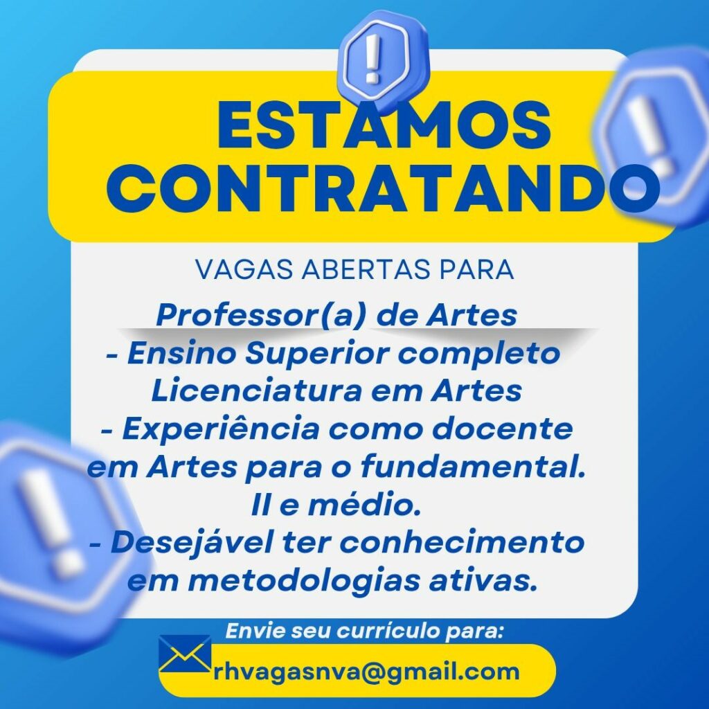 Seleção para vaga de Professor (a) de artes; Envie seu currículo!