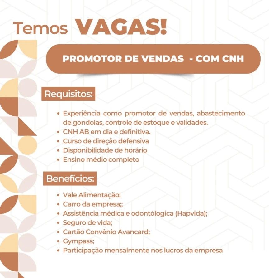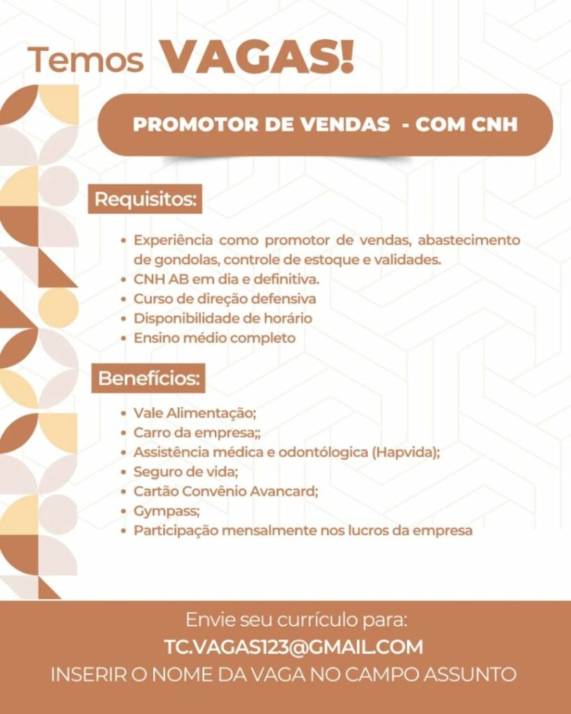 Seleção para vaga de Promotor de vendas; Envie seu currículo!