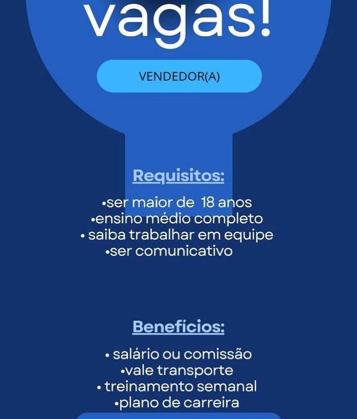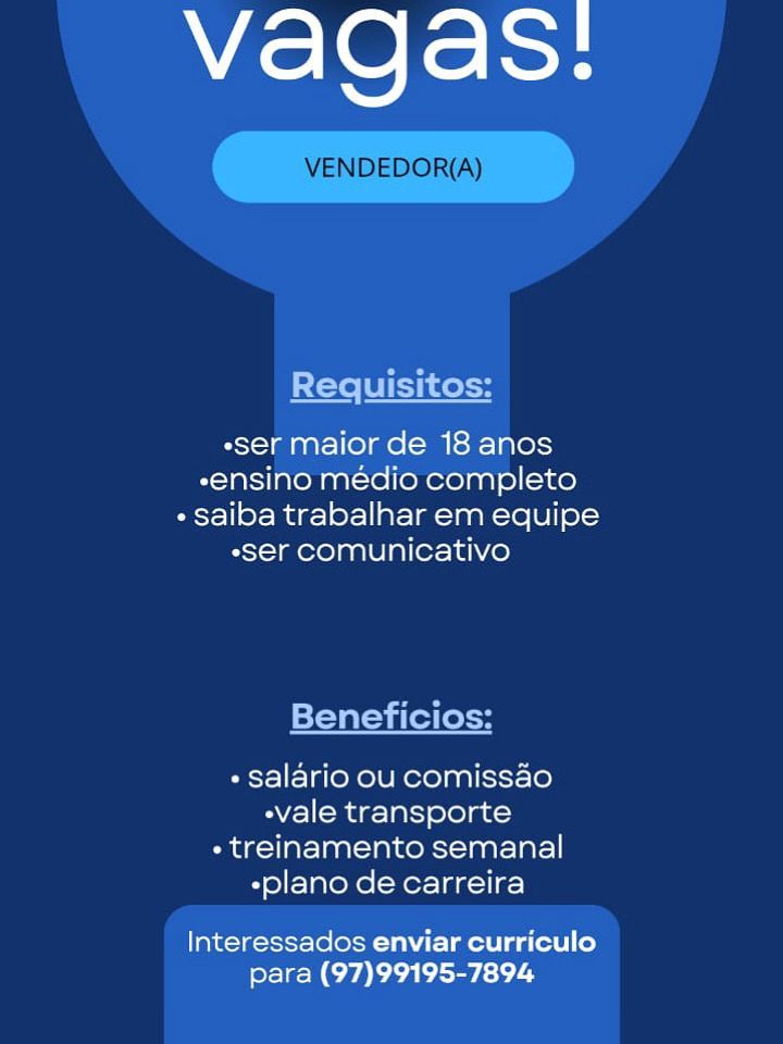 Seleção para vaga de Vendedor (a); Envie seu currículo!