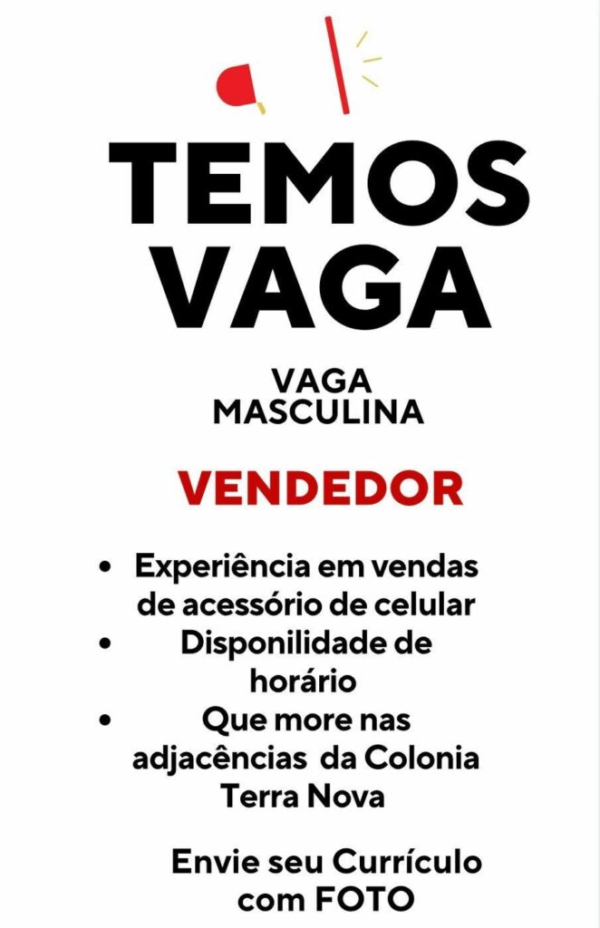 Seleção para vaga de Vendedor; Envie seu currículo!