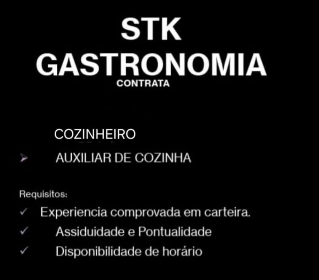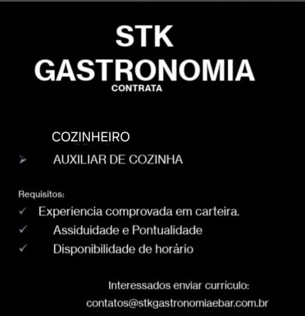 STK gastronomia está selecionando Cozinheiro, Auxiliar de cozinha; Envie seu currículo!