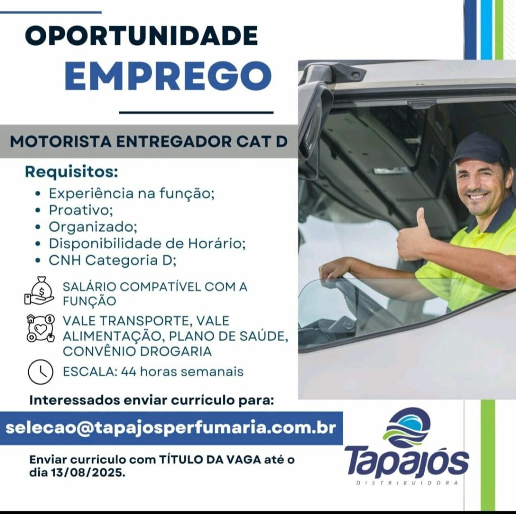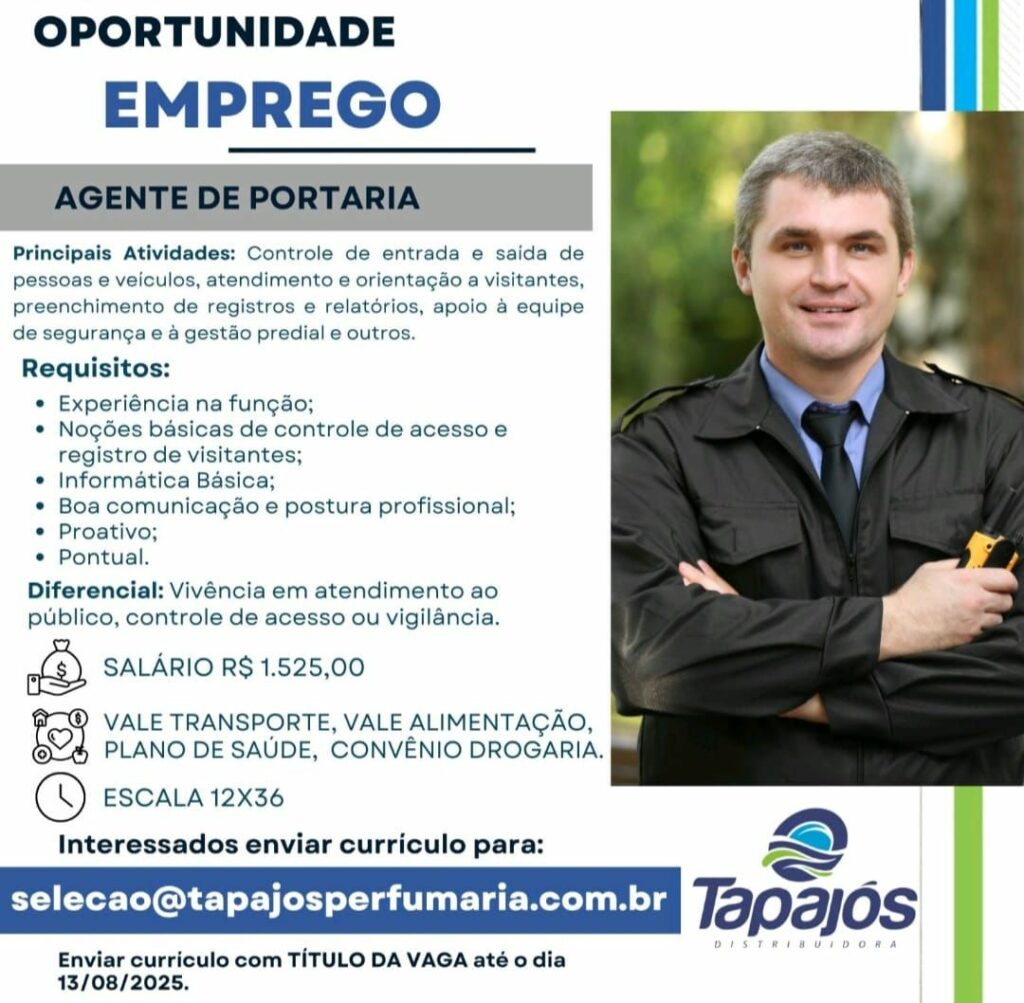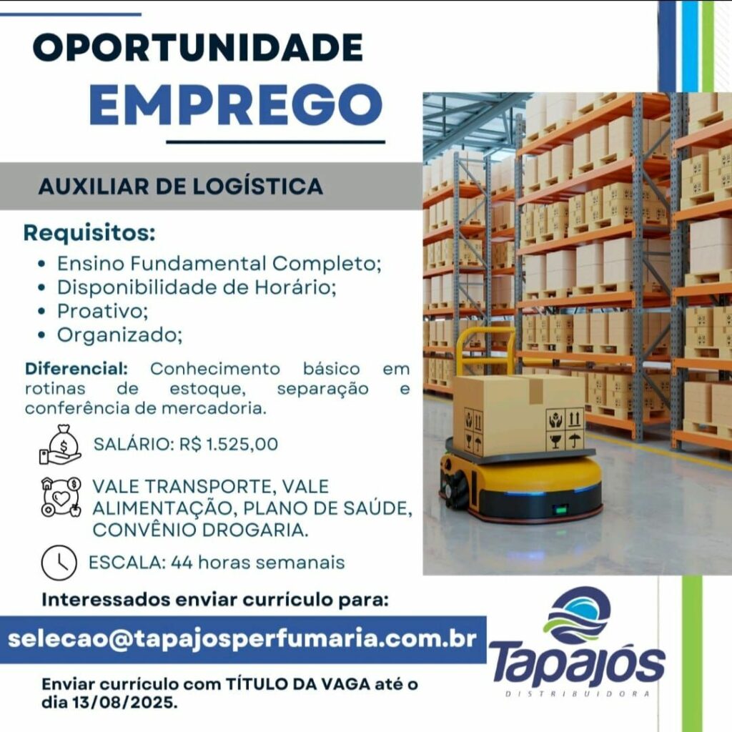Tapajós perfumaria seleciona Auxiliar de logística, Motorista, Agente de portaria; Envie seu currículo!