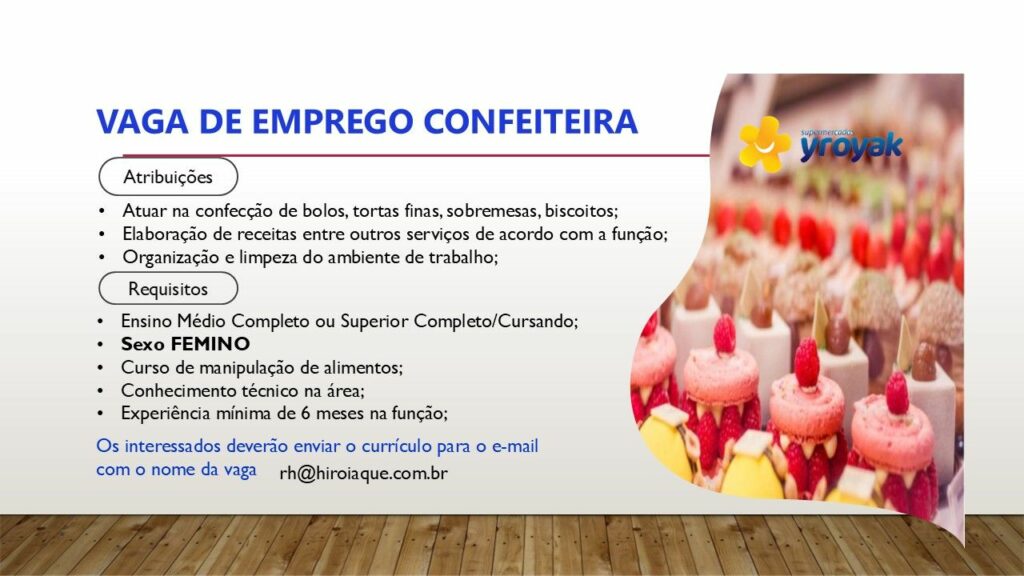 Yroyak supermercado está selecionando para vagas de emprego em Manaus