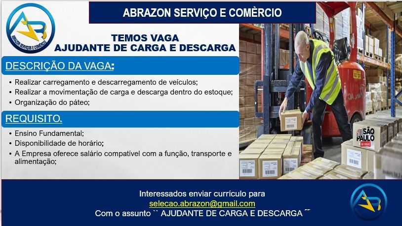 Abrazon serviço e comércio seleciona Ajudante de carga e descarga; Envie seu currículo!