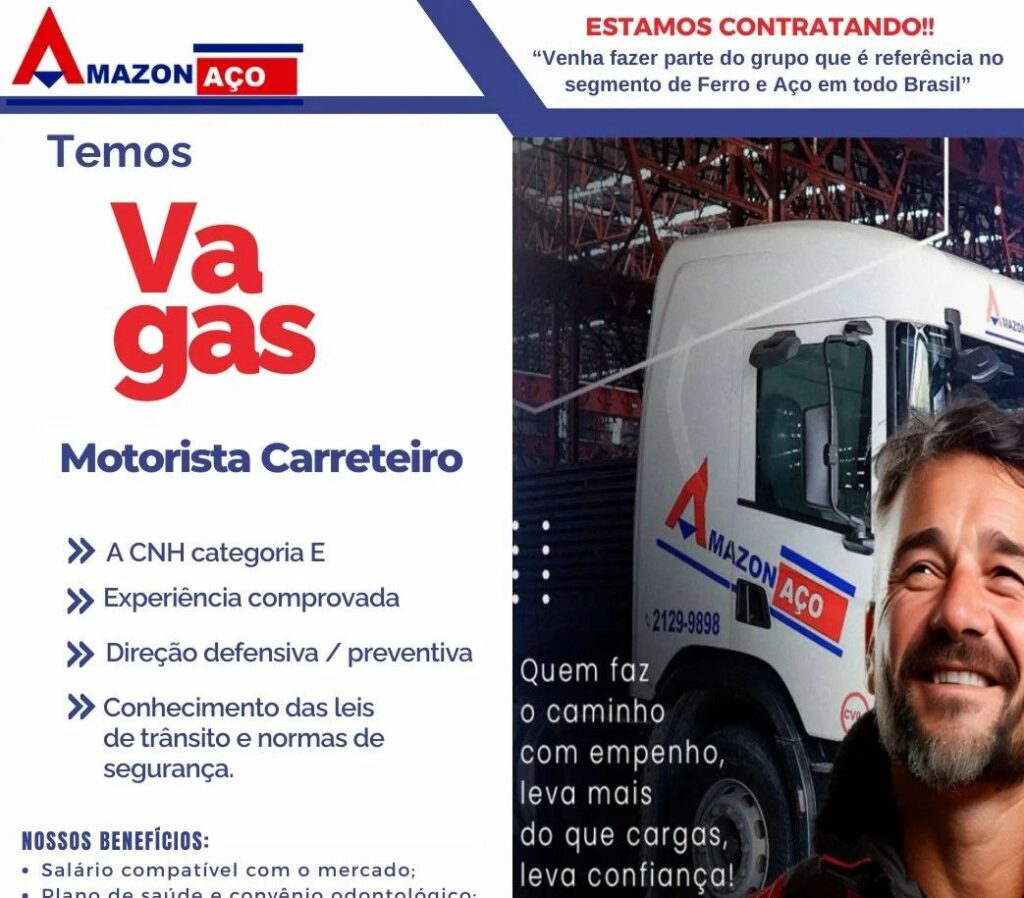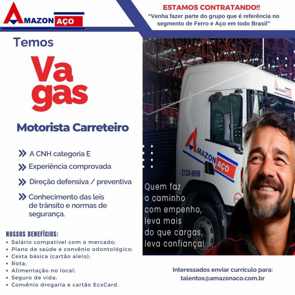 Amazon aço está selecionando Motorista carreteiro; Envie seu currículo!