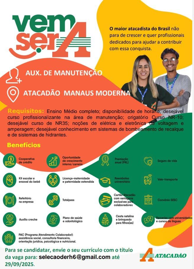 Atacadão Manaus moderna está selecionando para vagas de emprego em Manaus