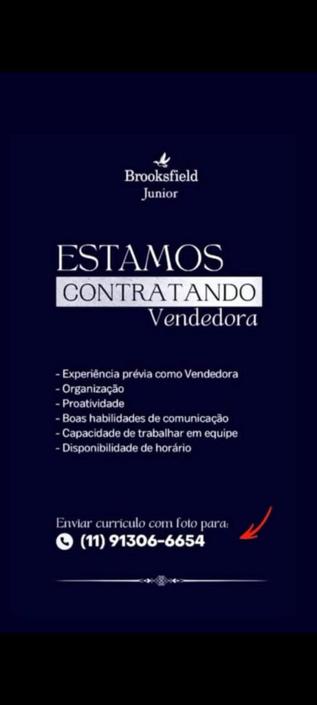 Brooksfield está selecionando Vendedora; Envie seu currículo!