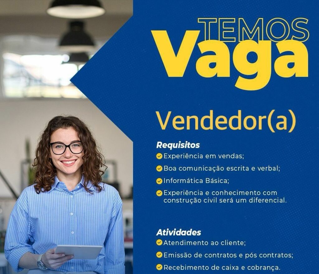 Casa construtor está selecionando Vendedor (a); Envie seu currículo!