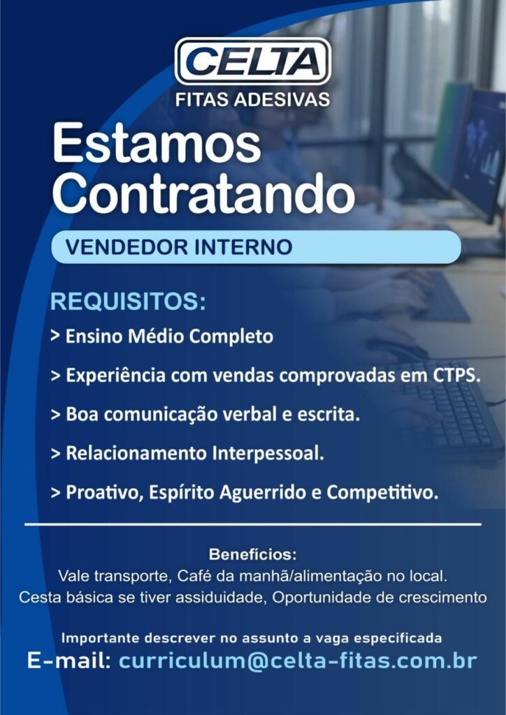 Celta fitas adesivas seleciona Auxiliar de serviços gerais, Vendedor interno; Envie seu currículo!