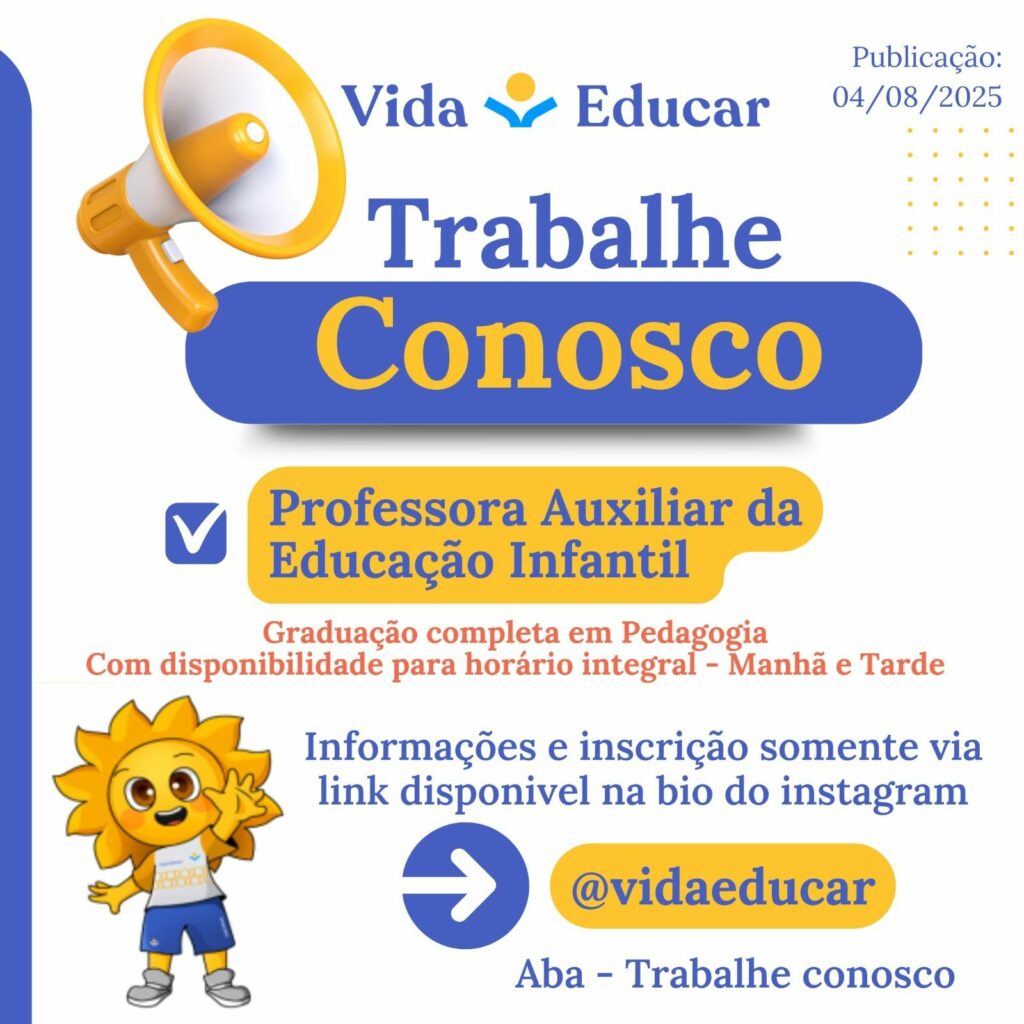 Centro educacional seleciona Professora auxiliar da educação infantil; Envie seu currículo!