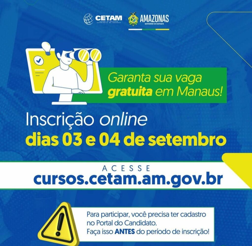 Enfim, siga aos cursos que serão oferecidos pelo CETAM,