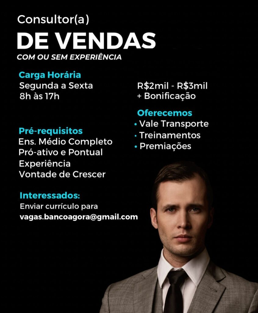 Com ou sem experiência! Empresa seleciona Consultor (a) de vendas; Envie seu currículo!