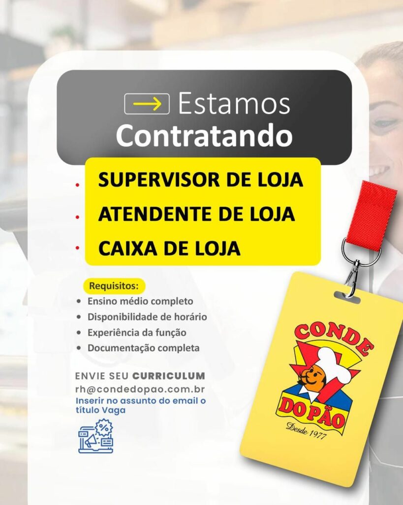 Confira as sete oportunidades de emprego oferecido pela empresa Conde do pão
