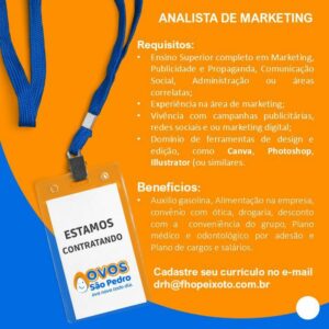 Confira as sete oportunidades de emprego oferecido pela empresa Ovos são pedro