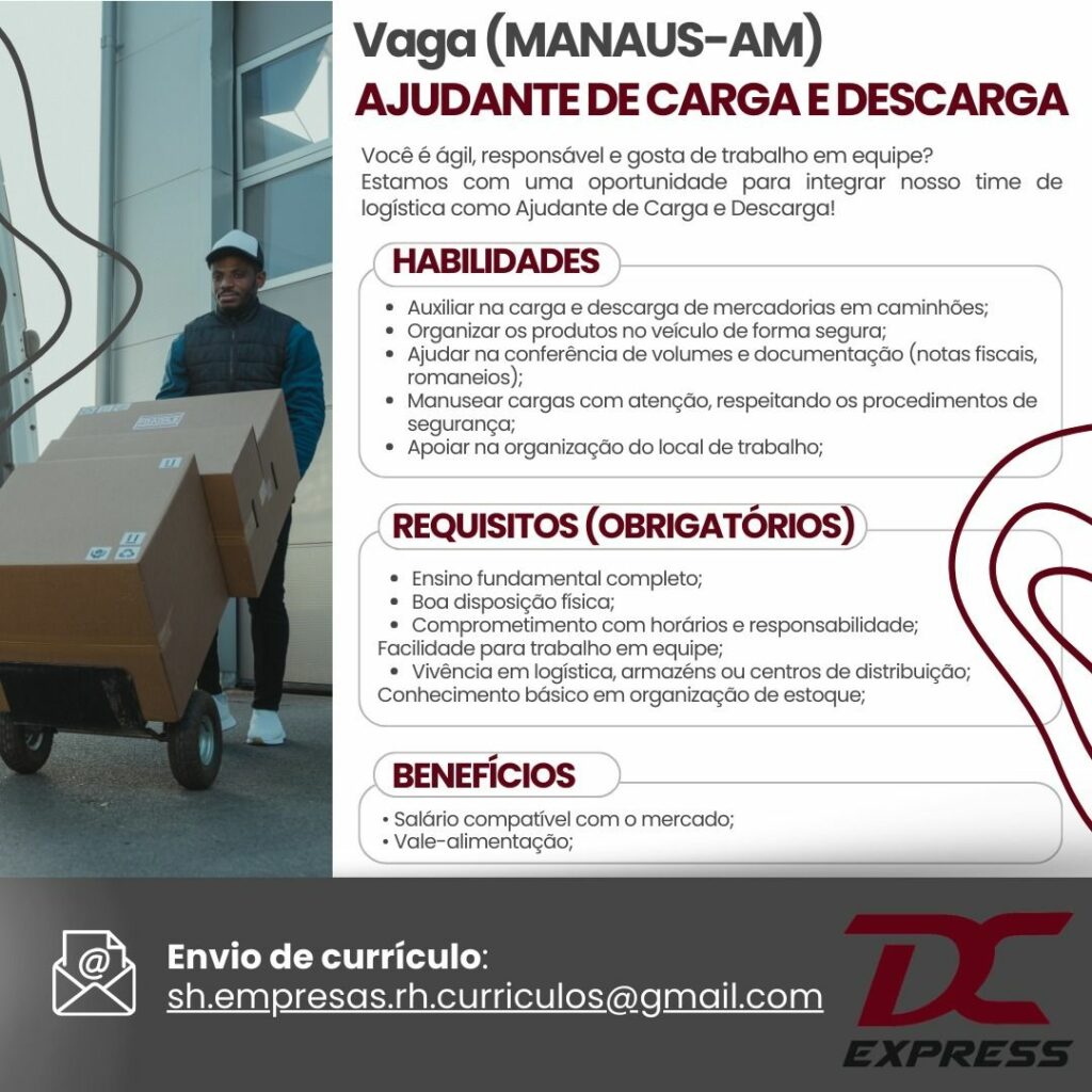 DC express está selecionando Ajudante de carga e descarga; Envie seu currículo!