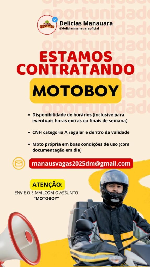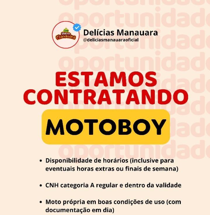 Delícias Manauara seleciona Motoboy; Envie seu currículo!
