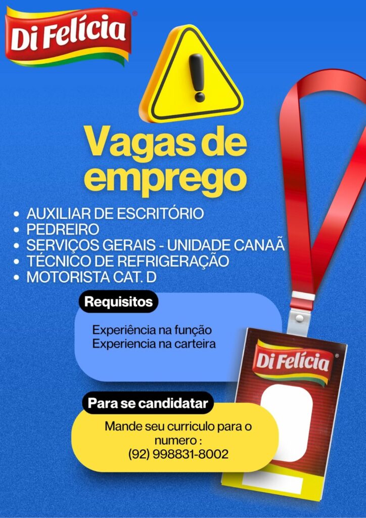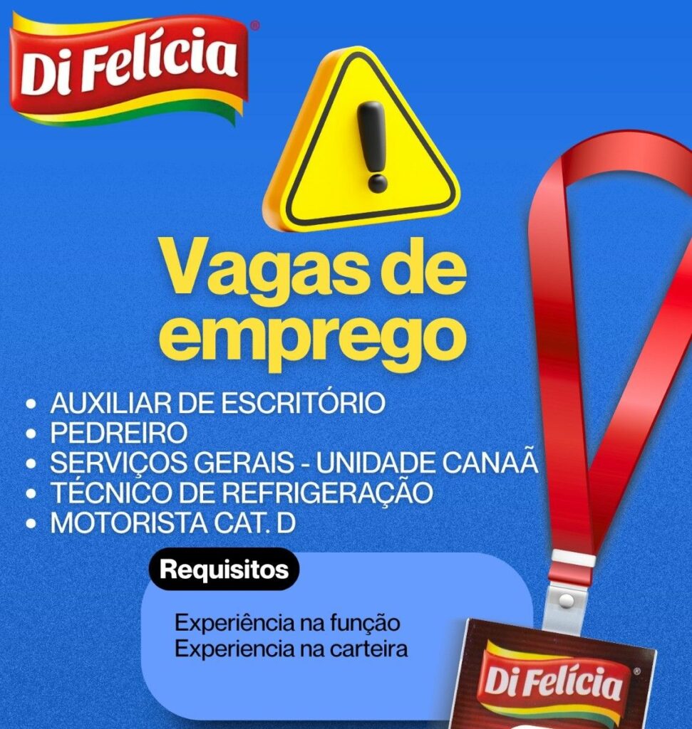 Di felícia está selecionando Auxiliar de escritório, Pedreiro, Serviços Gerais, Técnico de refrigeração, Motorista; Envie seu currículo!
