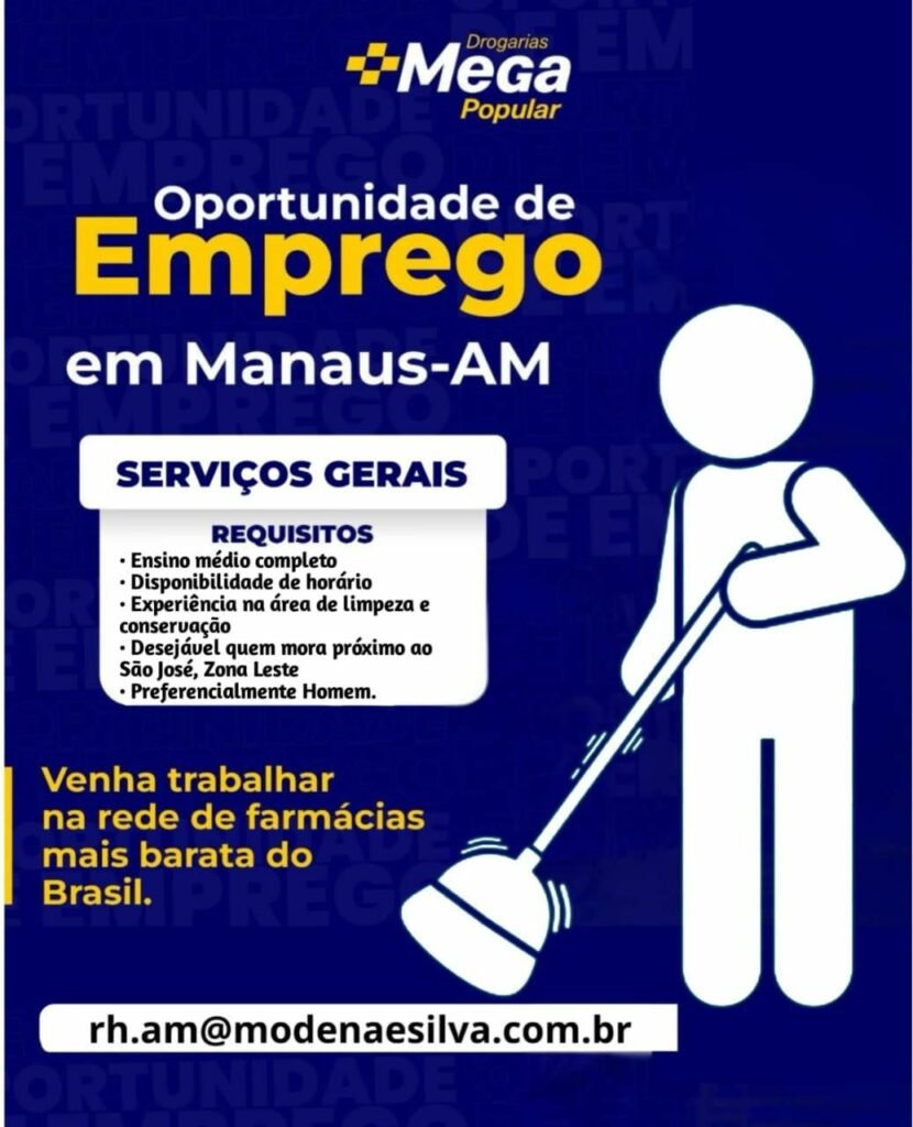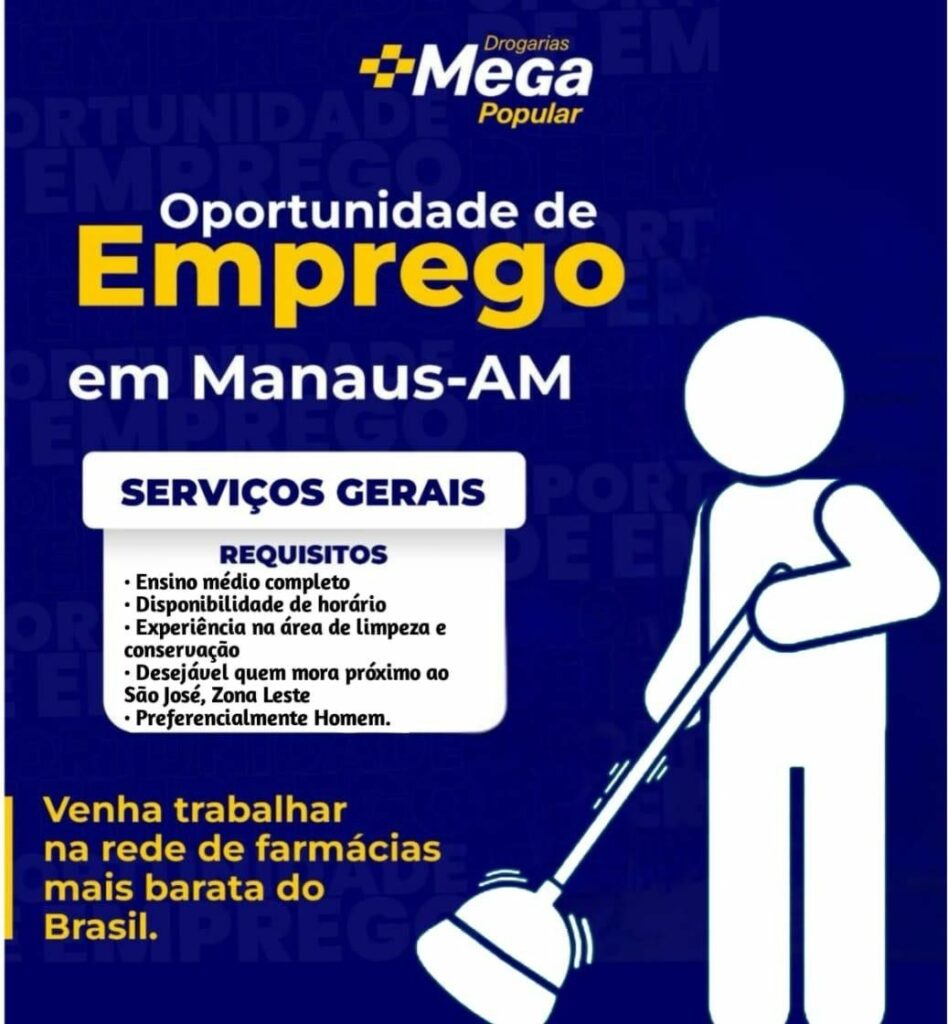 Drogaria Mega popular seleciona Serviços Gerais; Envie seu currículo!