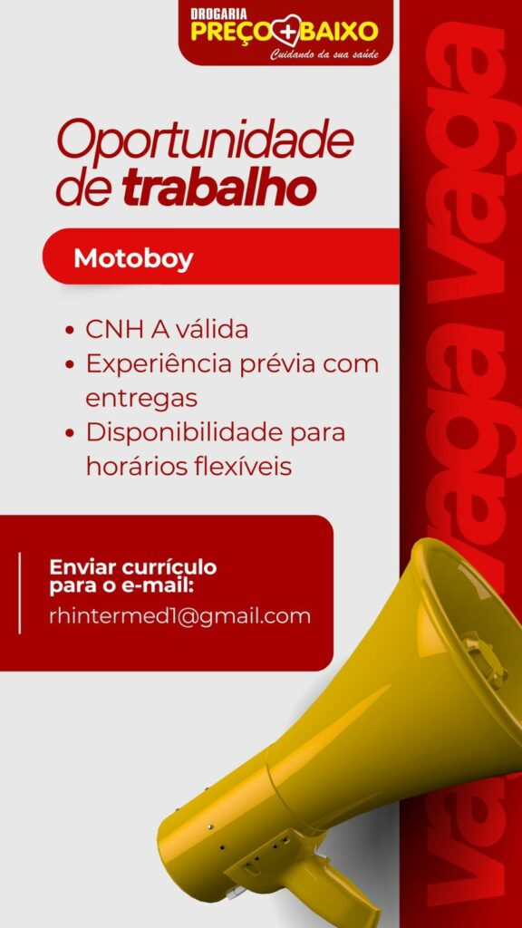 Drogaria Preço baixo seleciona Motoboy; Envie seu currículo!