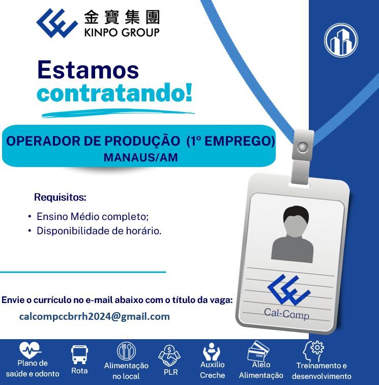 Empresa Cal-Comp está selecionando Operador de produção (1° Emprego); Envie seu currículo!