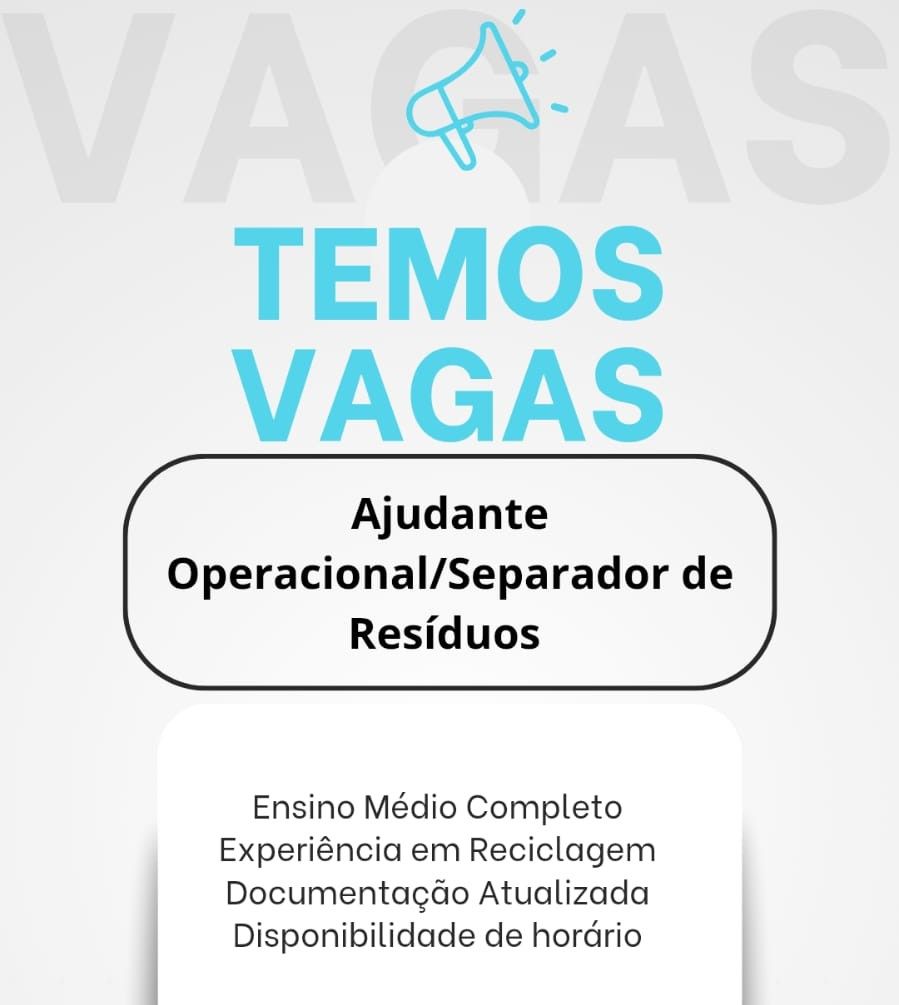 Empresa está selecionando Ajudante operacional, Separador de resíduos, Operador de prensa; Envie seu currículo!
