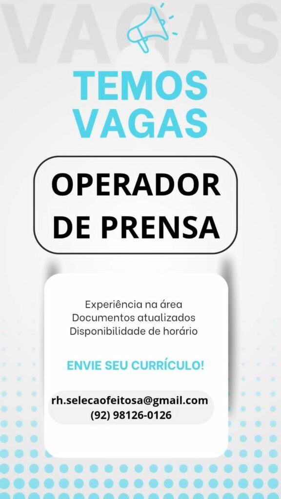 Empresa recruta o seguinte profissional Auxiliar Operacional; Envie seu currículo!