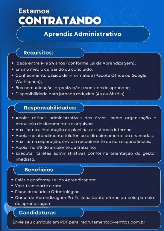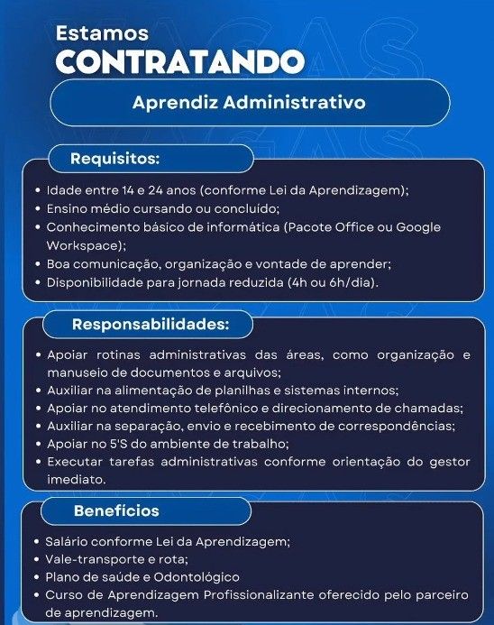 Empresa está selecionando Aprendiz administrativo; Envie seu currículo!
