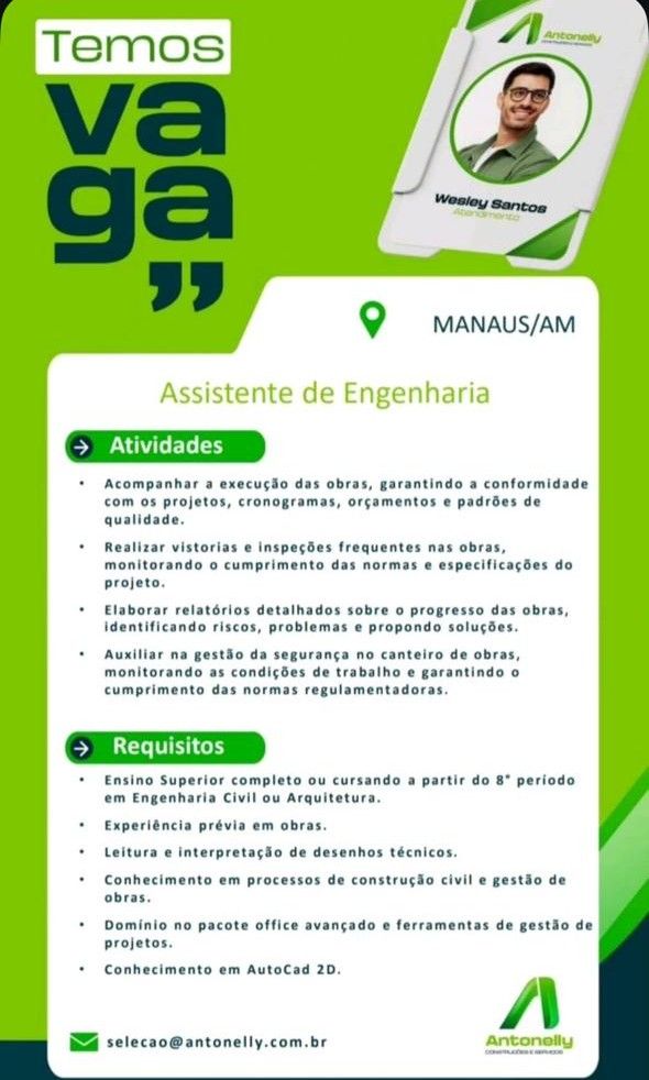 • Hospital Santa Júlia abre vaga para maqueiro em Manaus
