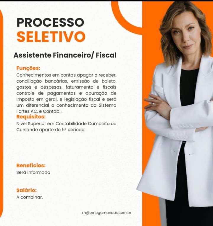 Empresa está selecionando Assistente financeiro fiscal; Envie seu currículo!